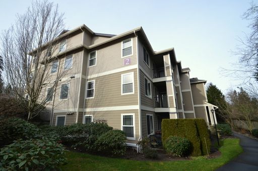 Available 5/8! Beautiful condo with great views of the mountains! No stairs to get to this second floor unit. The entry of this home is full of light. With nine foot ceilings, this condo feels huge! Open kitchen, dining and living room space. Two large bedrooms and an enormous main suite with a soaking tub, shower, and walk-in closet. W/D in the unit. This home is one you have to see! Two car detached garage included with this home. W/S/G included in rent. Easy access to I-5 and the Bothell-Everett Highway. Cats and small dogs okay with additional $50/pet rent.