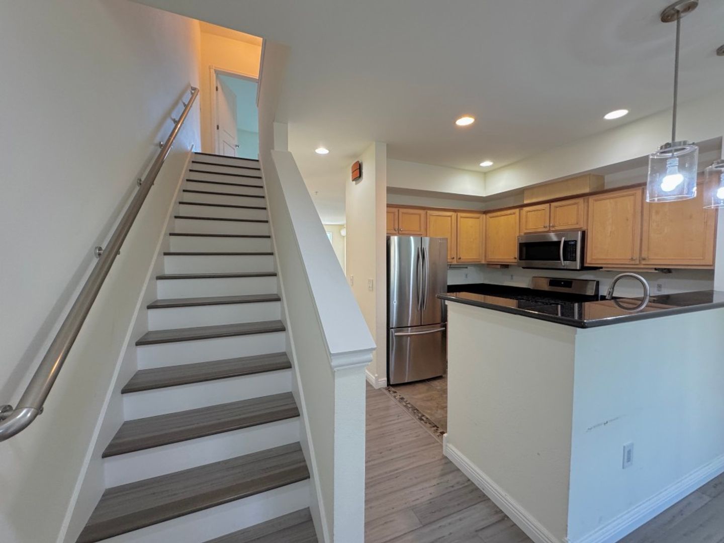 Avail. Now! Enjoy this 3 story, 2 bedroom, 2.5 bath townhome w/views of Lake Sammamish from primary bedroom & the inviting deck off the living room. LVP flooring throughout for easy care, marble gas fireplace for those cool evenings and mini splits throughout for AC for those warm summer days. The kitchen boasts maple cabinets, black granite countertops & SS appliance and opens to a dining area. The large primary bedroom w/ en-suite bath offers dual closets and the second bedroom has a private ¾ bath. The laundry closet is between the two bedrooms. The 2-car tandem garage has extra room for tools or workout space, plus storage closet below the stairs. Only 5 minutes to I-90, for easy access to Factoria, Bellevue and Downtown Seattle. Only 1.5 blocks to East Lake Sammamish Parkway (and the East Lake Sammamish Trail) for easy access to Microsoft campus and downtown Redmond. Quiet complex. Small dog and/or cat ok w/add. $500 security deposit. Tenant responsible for all utilities.