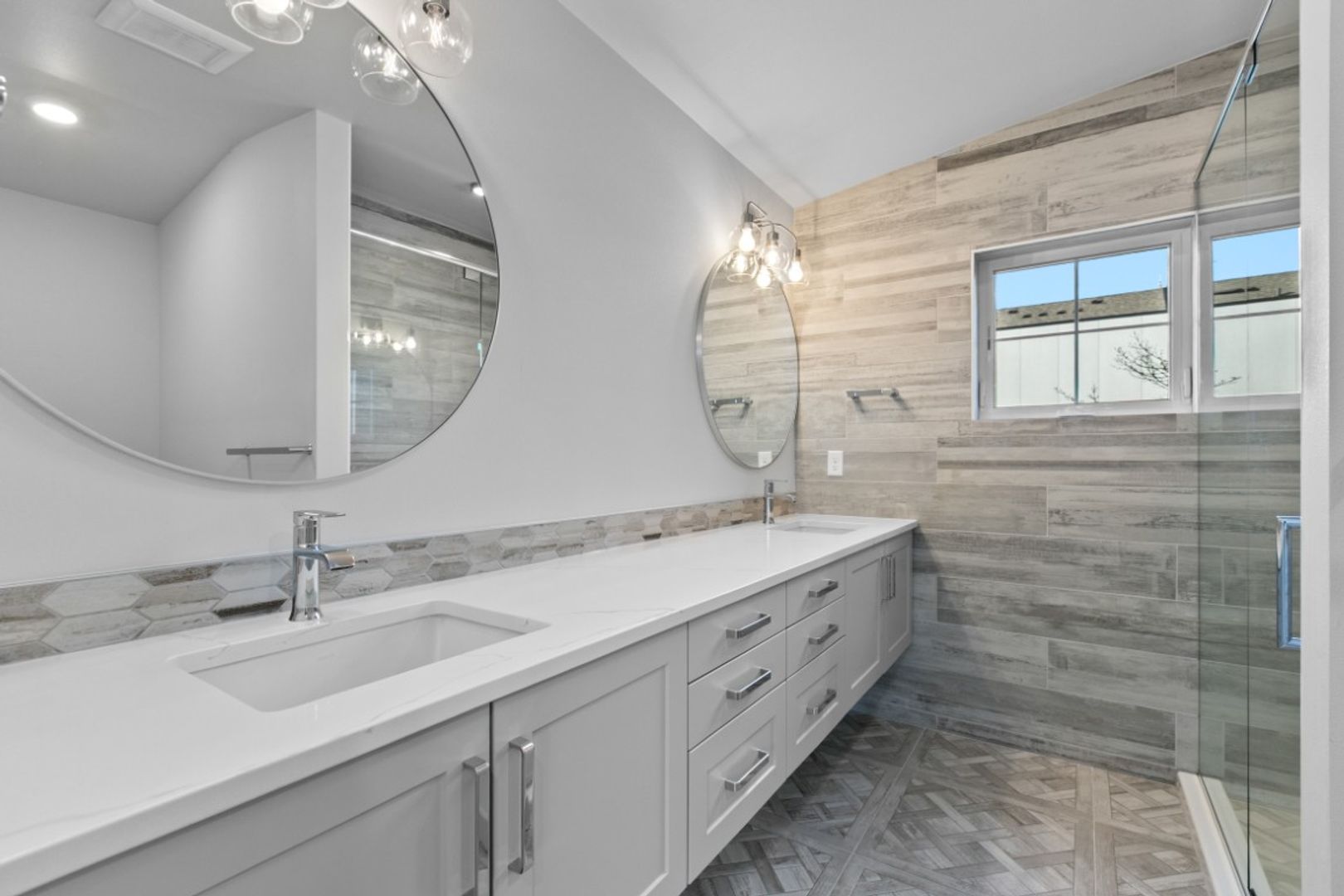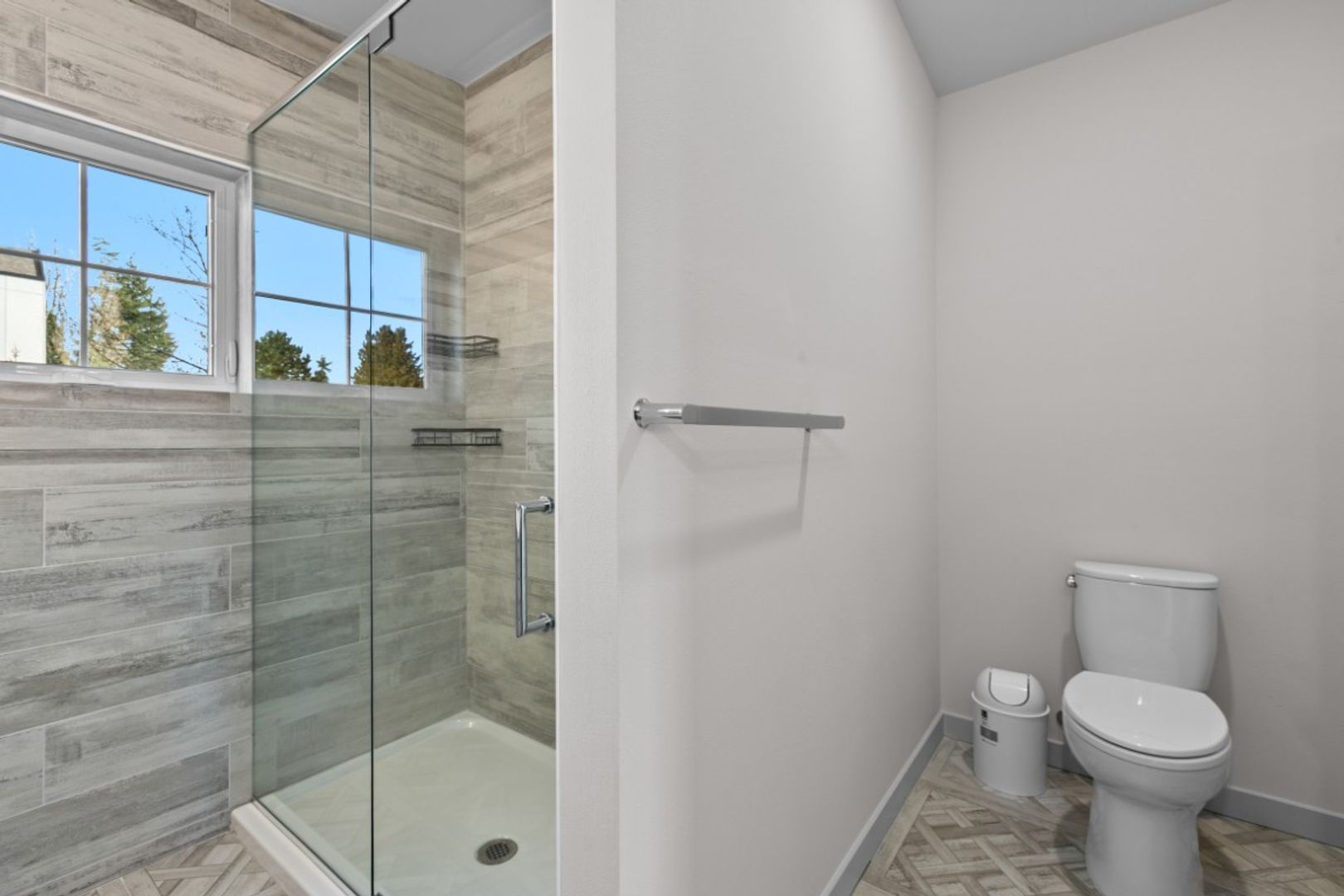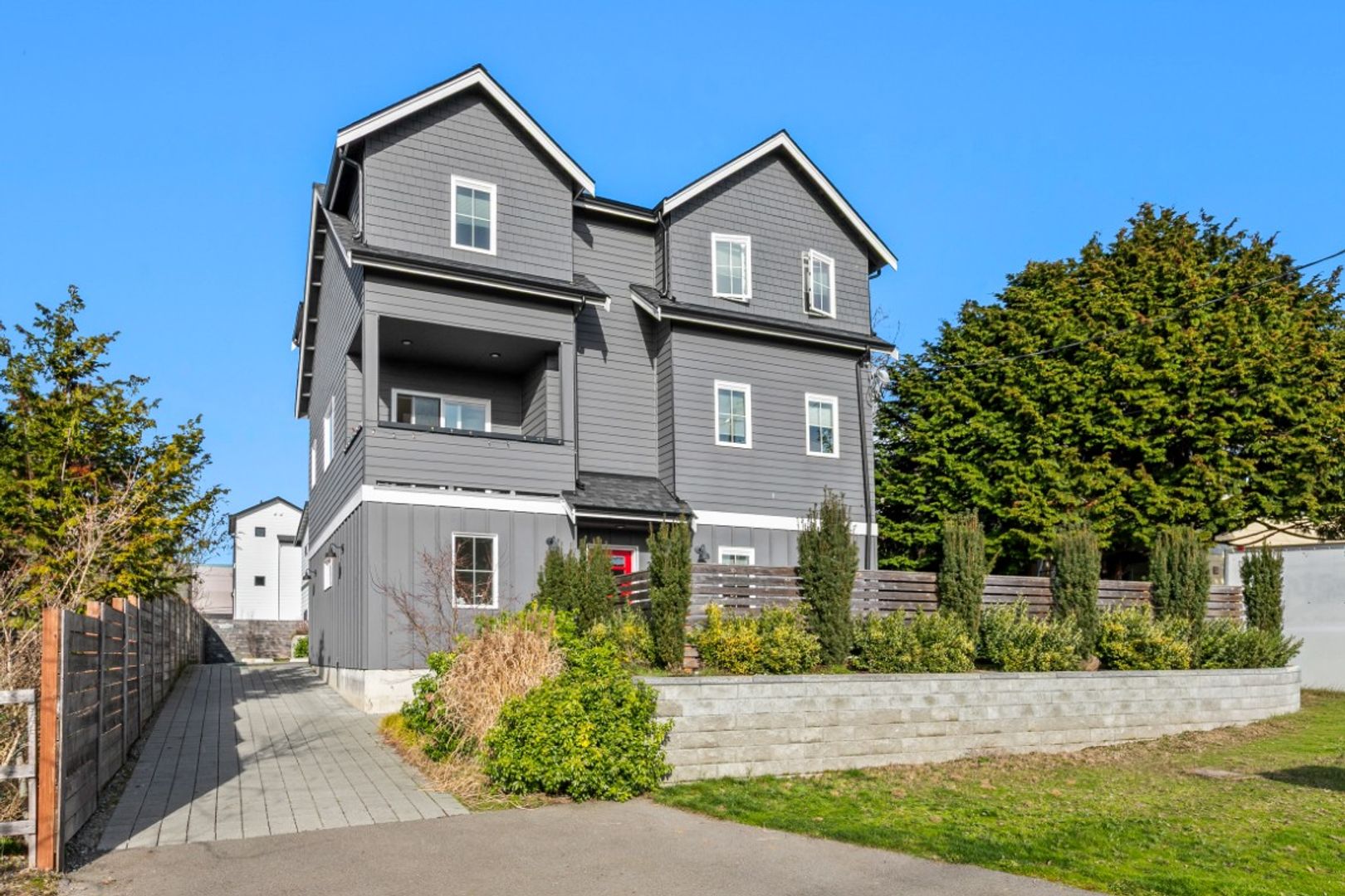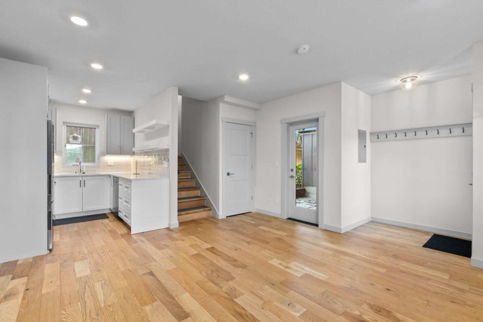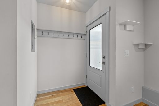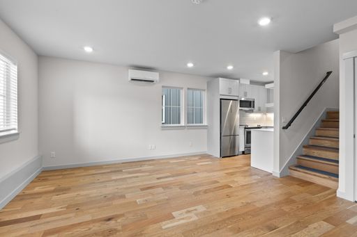 Available Now! Modern townhouse in the heart of Greenwood offering precision workmanship and sophisticated design just minutes from established shops, restaurants, and neighborhood favorites. Stunning finishes include large windows, shiplap accents, white oak engineered flooring, and designer hex tile. The open living, dining, and kitchen layout is perfect for entertaining, featuring quartz countertops and floating shelves, while light-filled interiors extend to a private patio. Main level includes a bedroom and full bath with soaking tub; upstairs boasts a spacious primary suite with double vanity and three-quarter bath. Additional highlights include a 240-volt outlet ready for EV charging, one designated parking space, and a serene park-like setting.