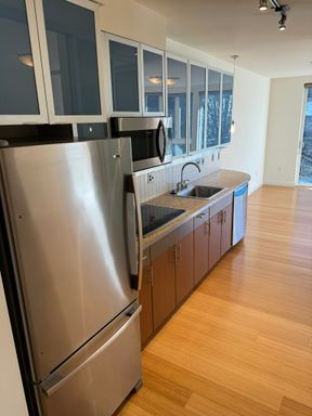 Avail. Now! Convertible style one bedroom w/ gleaming hardwood floors, floor to ceiling windows, stainless appliances, A/C (mini-split in bedroom) & step out balcony. Enjoy concierge services, club lounge, beautiful roof-top deck w/ 360 degrees of Space Needle, Sound & mountain views. Close to Olympic Sculpture Park, Waterfront, Stadiums, SAM, Pike Place, EMP, Seattle Center, Amazon & Gates Foundation. Everything the city has to offer is right out your front door! 1 reserved parking spot in garage. W/S/G incl. 1 pet OK under 251bs.