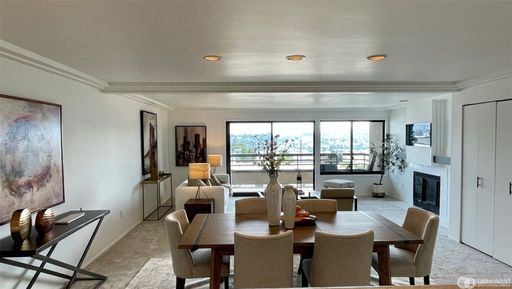 Available 5/5/26. Take in the spectacular Seattle view of they city, lake and mountains, where you will enjoy watching the seaplanes, sailboats, and the 4th of July Fireworks from your two balconies! This 2-bedroom, 2 bath view condo in Queen Anne has it all! Enter this elegant, light-filled condo featuring a large chef's kitchen overlooking the generous dining/living room with gas fireplace and new carpet throughout. The spacious primary suite features a soaking tub, 2 closets, & a covered private balcony. W/D is included and there is an abundance of closet space throughout. Convenient entry & covered secure parking & bike storage. w/s/g, 1 parking spot incl, no storage. Close to downtown, Queen Anne, Fremont, & SLU, or take major transportation routes to the Eastside. 1 dog, under 40lbs/pet license/spayed/neutered required/25% of rent. Renters insurance required.