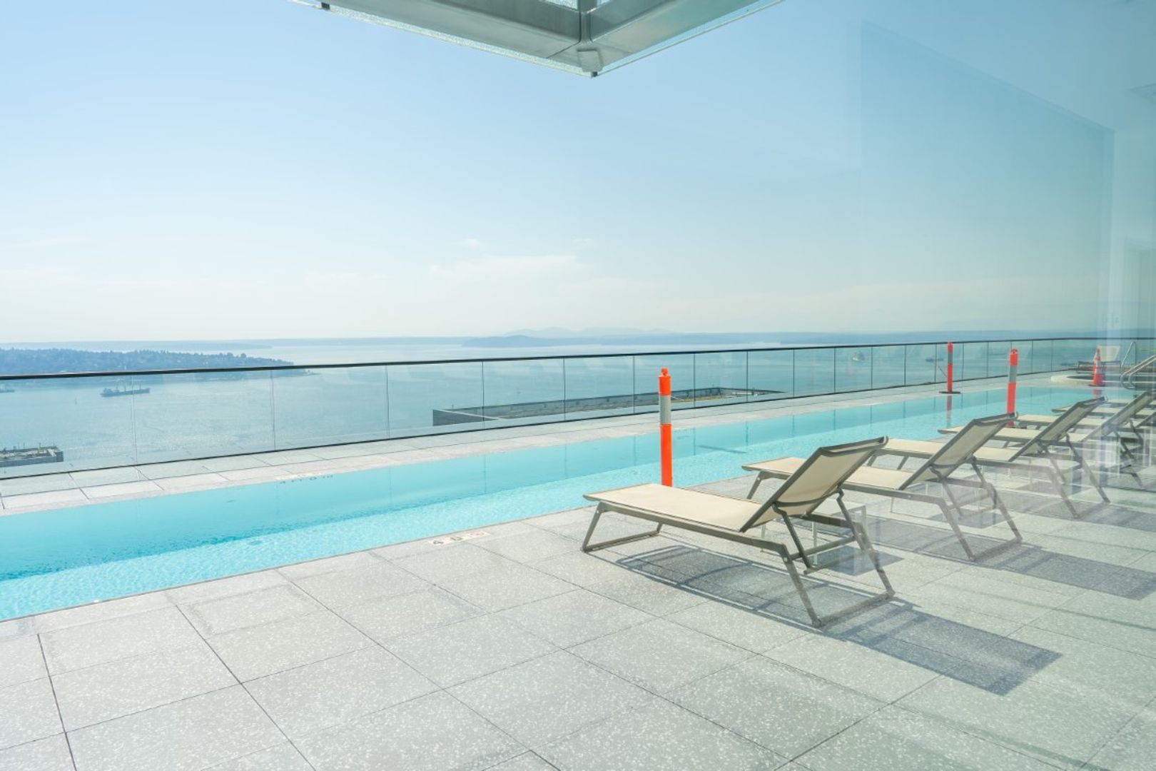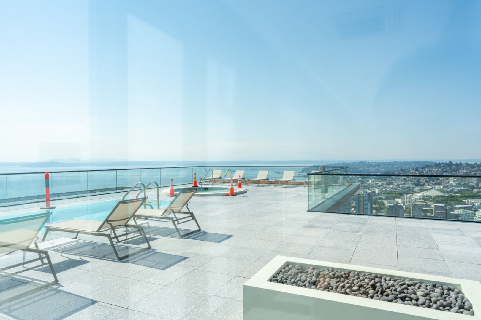 Available now! Amazing opportunity to live in this brand new 2 bedroom/2 bath condo located in the First Light high-rise, w/ large deck to take in the expansive views of the Puget Sound and Olympic Mountains. The unit features sleek finishes; a chef’s kitchen and spa inspired bath, floor to ceiling windows letting in plenty of natural light, custom-designed interiors by the architect and includes custom B&B Italia cabinetry, light finishes with contrasting details, Kohler fixtures, Miele appliances, keyless entry and hardwood throughout. Amenities include a 25-meter cantilevered lap pool under the blue sky, rooftop resident lounge, 24/7 concierge, full-floor gym, Secret Garden, and pet-friendly areas. Close to SLU, public transportation, Pike Place Market, waterfront, restaurants. w/s/g and cold water included in rent (tenants pay for hot water) 1 parking space (no storage) 1 dog under 40 lbs/1 cat with 25 % pet deposit. Renters insurance req.