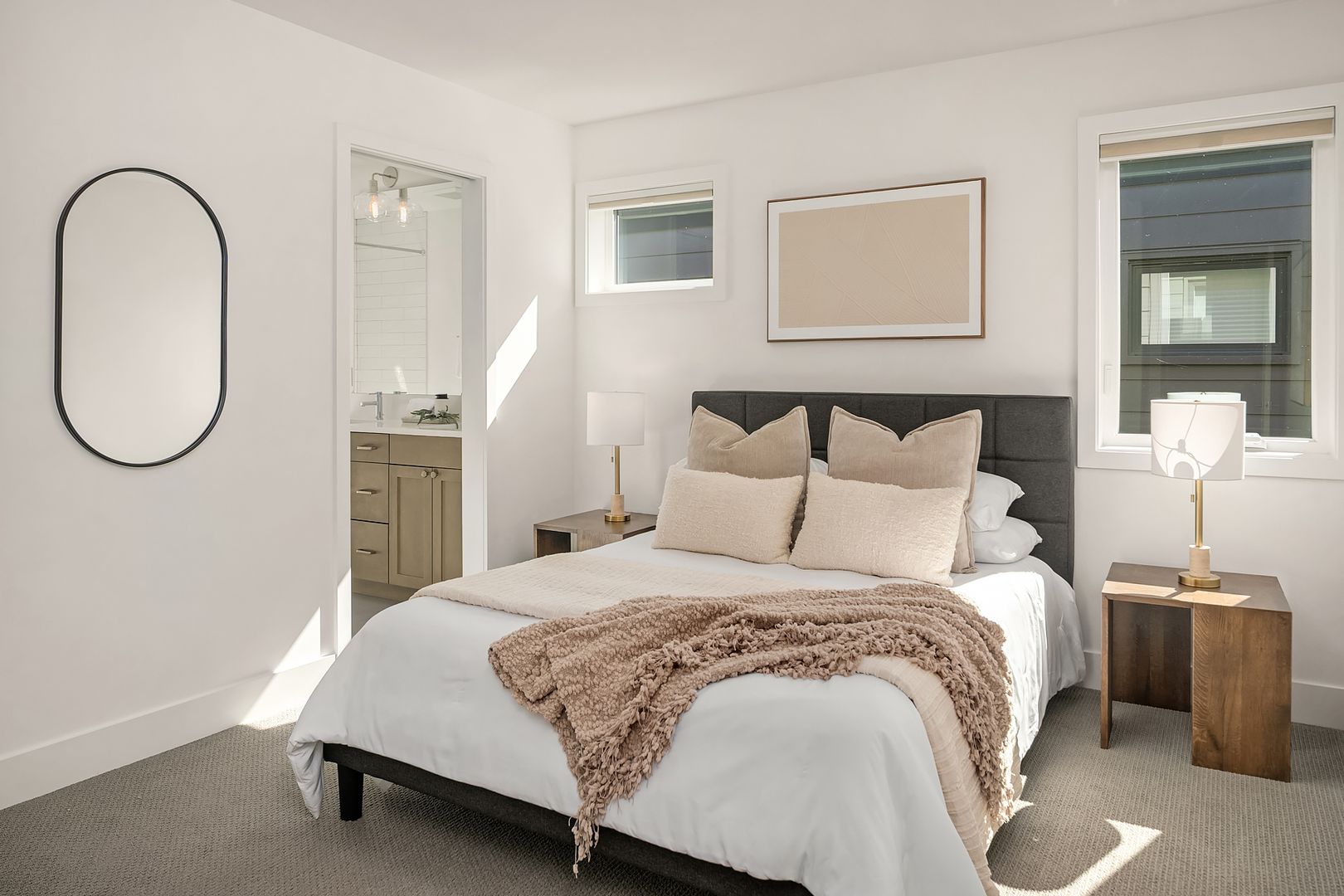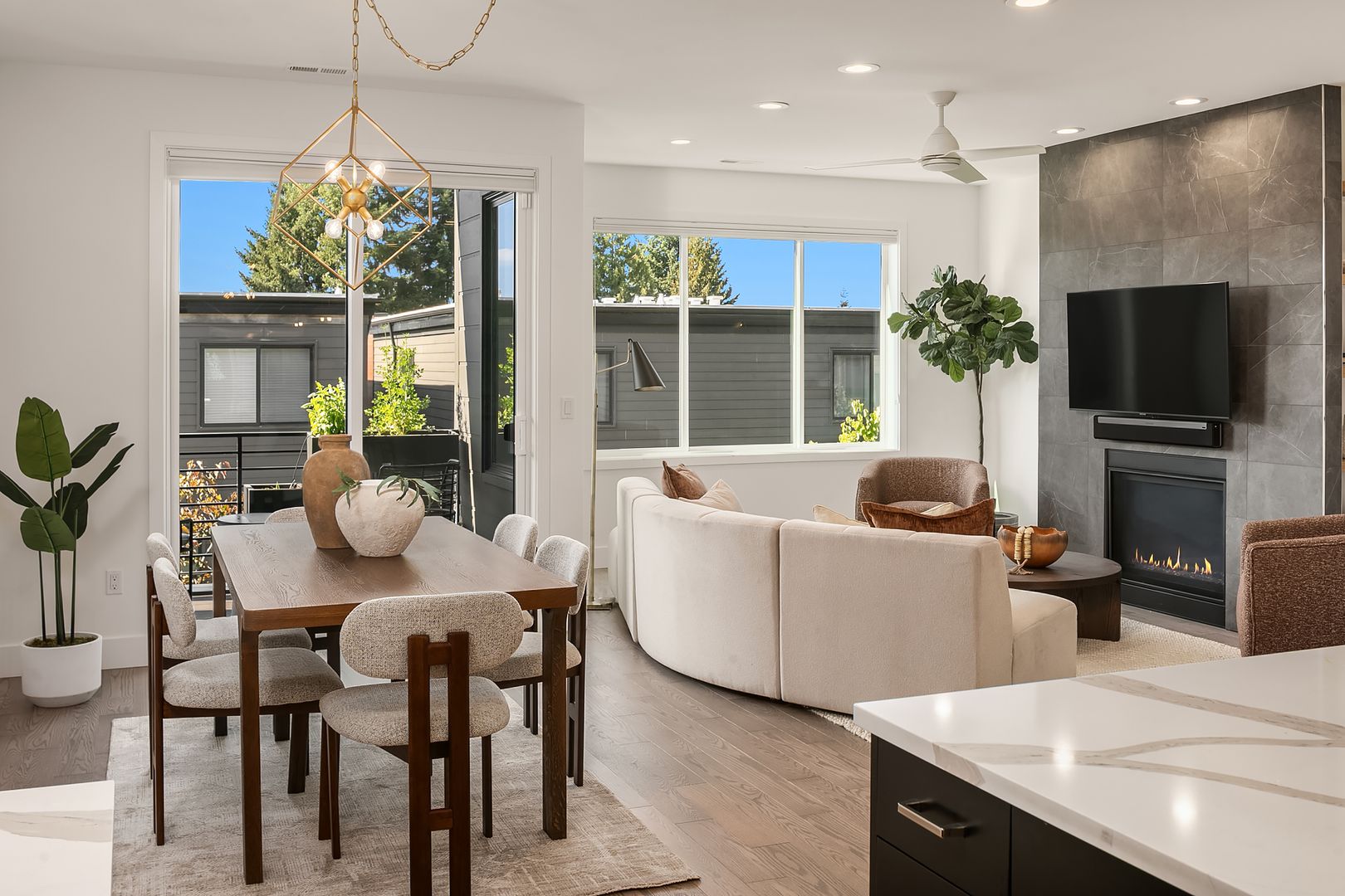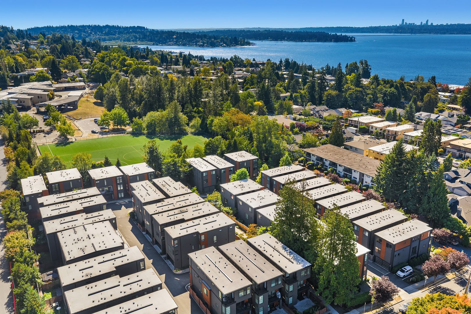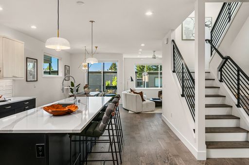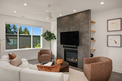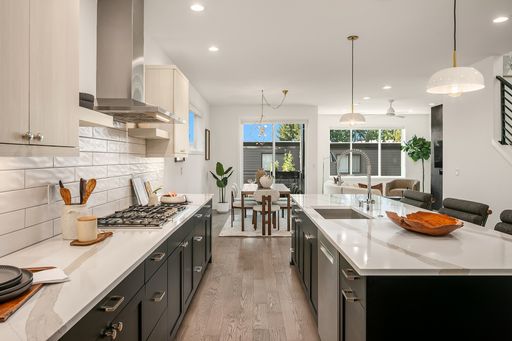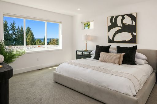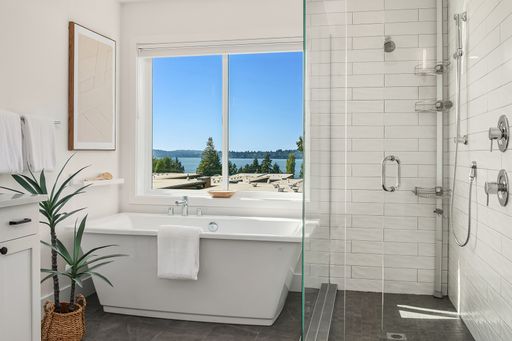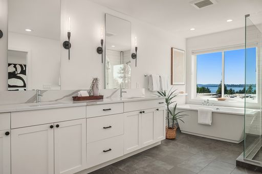 Available now! Welcome to this stunning, light-filled home offering thoughtful design, modern comfort, and exceptional versatility. The main floor boasts an expansive kitchen with a large quartz island, gas range, and pantry with abundant storage. The open dining and living areas flow to a covered deck, while an additional flex space and powder room complete the level. Upstairs, find two bedrooms sharing a full bath, laundry room with utility sink, and luxurious primary suite with mountain and lake views, walk-in closet, and spa-like bath with soaking tub and walk-in shower. The lower level features a bedroom, bonus room, and covered patio that opens to a fully fenced, low maintenance backyard—perfect for relaxing or entertaining. Home has A/C and EV charger! Small dogs considered case by case. Walking distance to Google and all DT Kirkland.